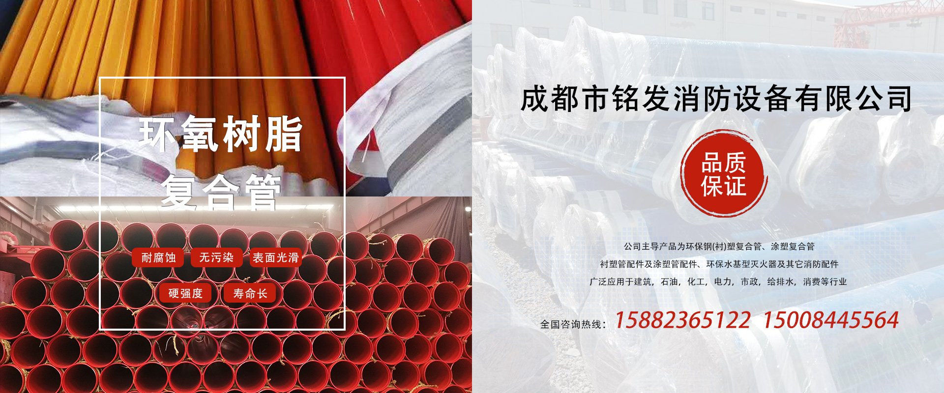 成都市銘發(fā)消防設(shè)備有限公司主導(dǎo)產(chǎn)品為環(huán)保鋼(襯)塑復(fù)合管、涂塑復(fù)合管、襯塑管配件及涂塑管配件、環(huán)保水基型滅火器及其它消防配件。廣泛應(yīng)用于建筑、石油、化工、電力、市政、給排水、消防等行業(yè)。...